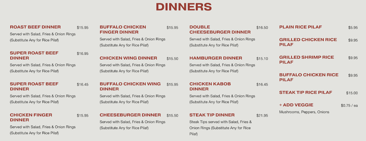 Welcome to Geo's Roast Beef & Pizzeria, a hidden gem nestled in Amesbury, MA. This cozy spot boasts an impressive menu that showcases their masterful roast beef sandwiches, with highlights including the renowned Three Way Roast Beef and the flavorful Boom Boom Beef. Customers rave about the fresh, tender meat, perfectly complemented by crisp, golden fries and hearty onion rings.